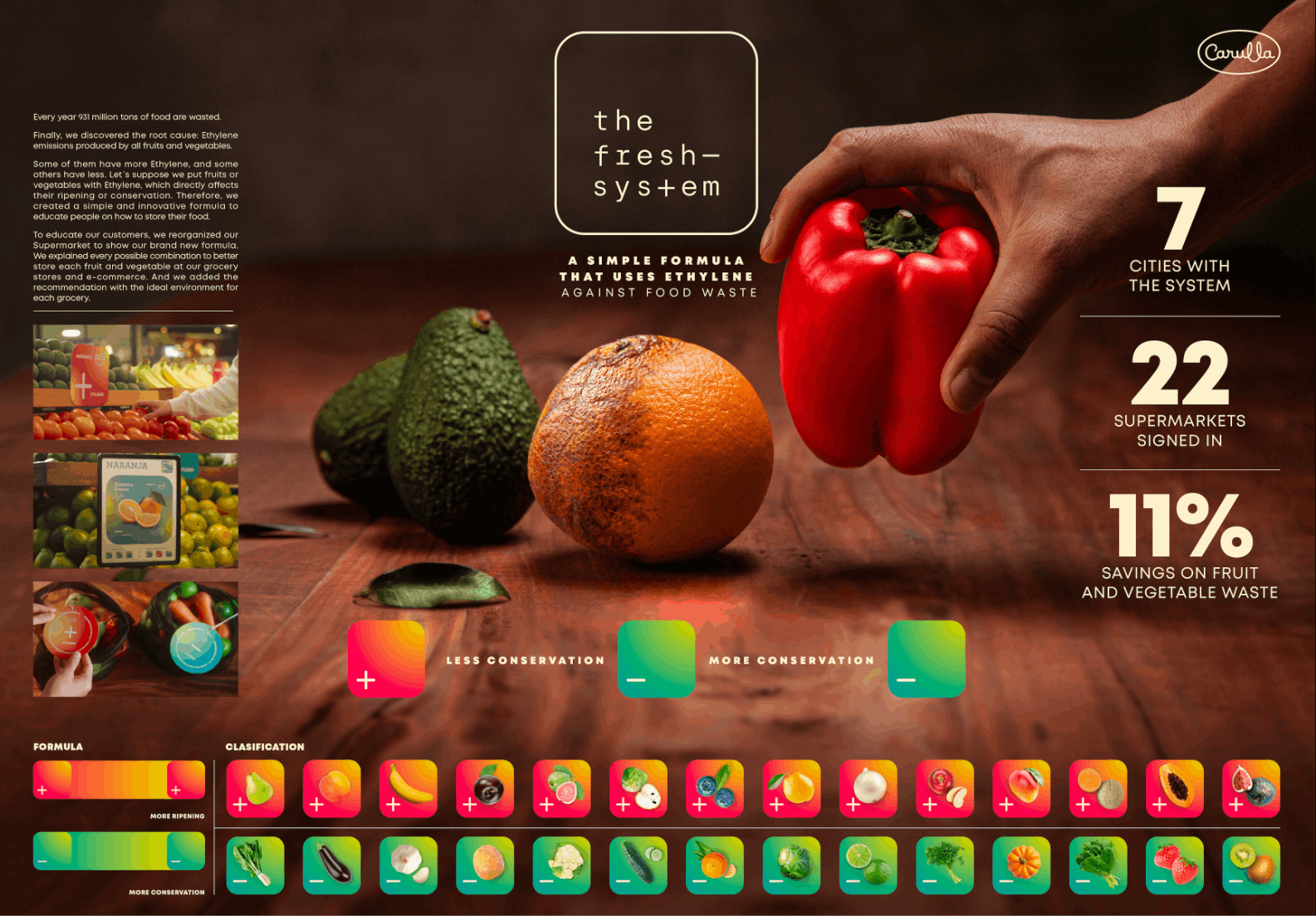 Every year 931 million tons of food are wasted. At last, we discovered the root cause. Ethylene emissions produced by fruits and veggies. We created a formula to organize them at home to fight against food waste.